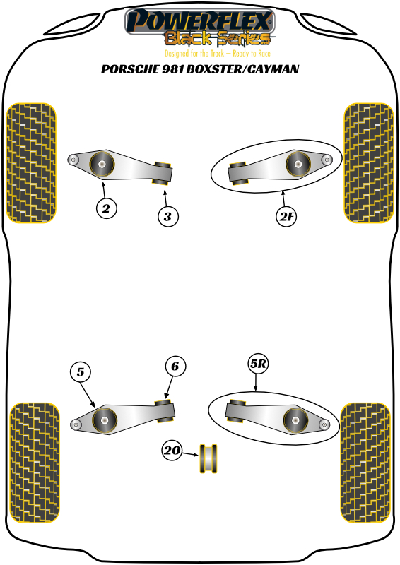 Powerflex Black серия (track) PF57K-1002BLK для Porsche 981 Boxster/Cayman (2012 - 2016) - Комплект рычагов и втулок гусеничной подвески