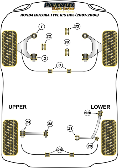 Компоненты Powerflex Black серия (track) (для трекового использования и энтузиастов тюнинга и спорт вождения) — улучшают устойчивость вашего автомобиля на дороге и характеристики шасси, контролируя нежелательный «эффект паразитного движения» в подвеске. Powerflex Black серия (track) — Для трековых и автоспортивных целей.
