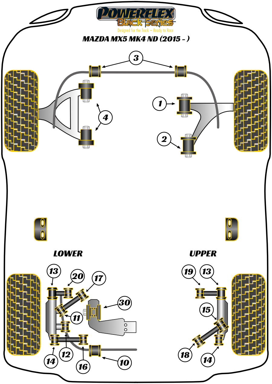 Компоненты Powerflex Black серия (track) (для трекового использования и энтузиастов тюнинга и спорт вождения) — улучшают устойчивость вашего автомобиля на дороге и характеристики шасси, контролируя нежелательный «эффект паразитного движения» в подвеске. Powerflex Black серия (track) — Для трековых и автоспортивных целей.