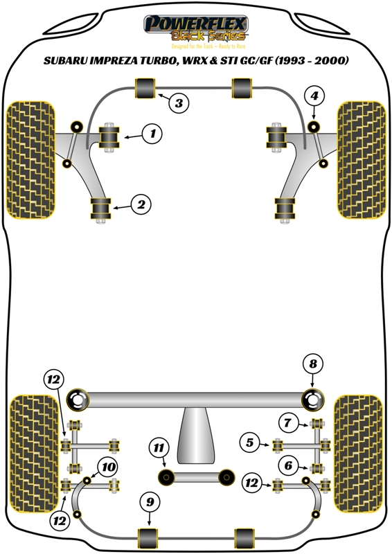 Компоненты Powerflex Black серия (track) (для трекового использования и энтузиастов тюнинга и спорт вождения) — улучшают устойчивость вашего автомобиля на дороге и характеристики шасси, контролируя нежелательный «эффект паразитного движения» в подвеске. Powerflex Black серия (track) — Для трековых и автоспортивных целей.