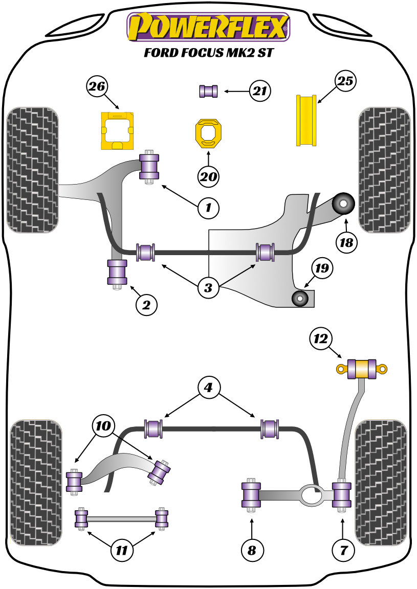 Компоненты Powerflex Road серия (street) (для городского использования и любительского трека) — улучшают устойчивость вашего автомобиля на дороге и характеристики шасси, контролируя нежелательный «эффект паразитного движения» в подвеске. Они обеспечивают более длительный срок службы узла, увеличенный срок службы шин, улучшают управляемость, повышенную безопасность и большую экономическую эффективность за счет более редкой замены по сравнению со стандартными сайлентблоками.